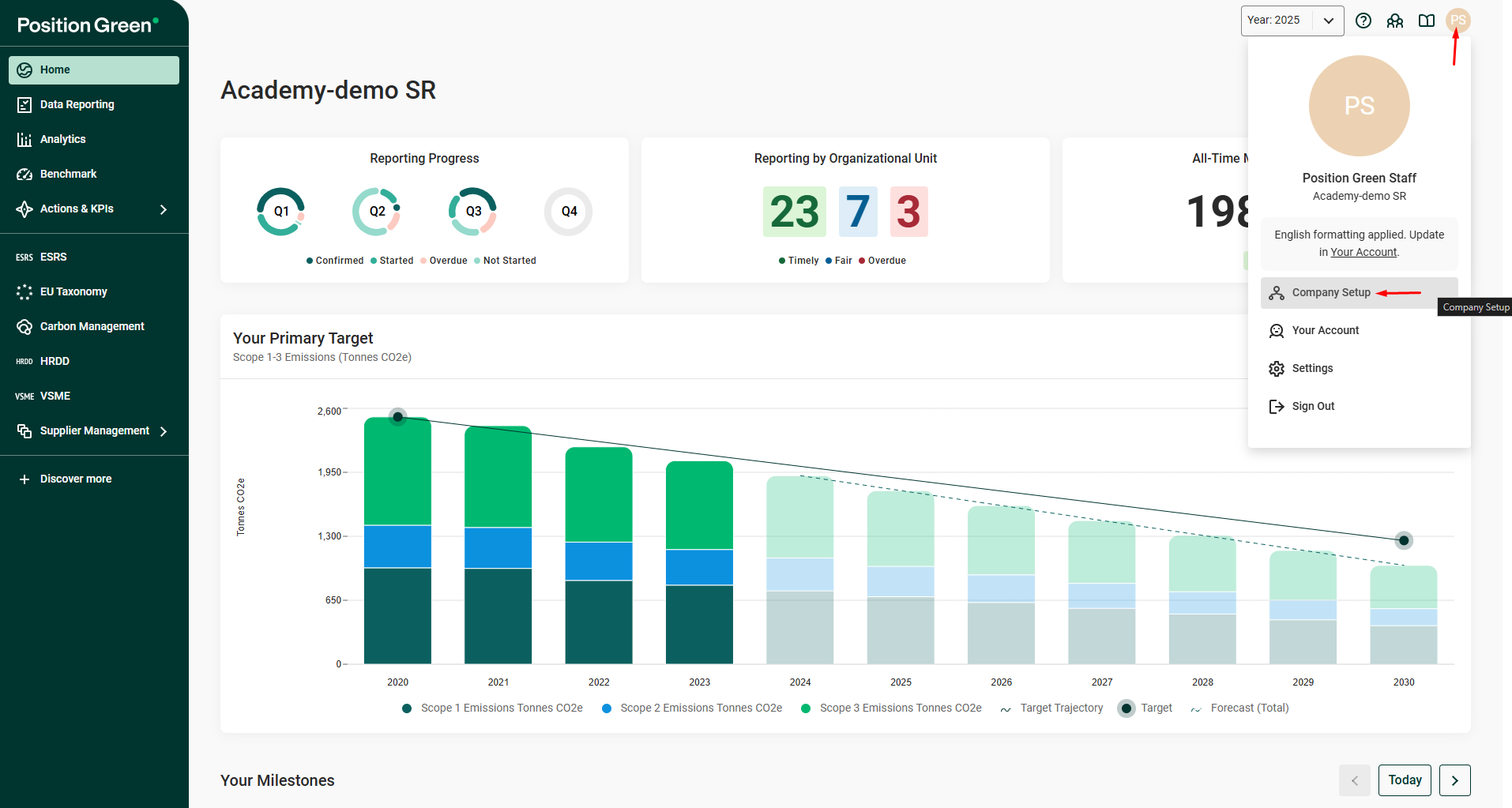 Schritt 1. Gehen Sie über Ihre Initialen zu „Setup des Unternehmens “.