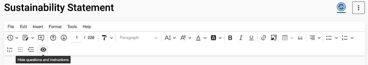 The Statement Editor has many features available as in online word editors, and allows you to freely edit the contents of the sustainability statement.