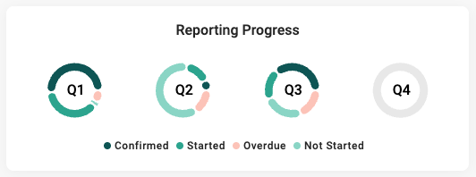 On the home page, widgets illustrate different metrics in Position Green. This widget displays the registration distribution by state and organized by quarters.