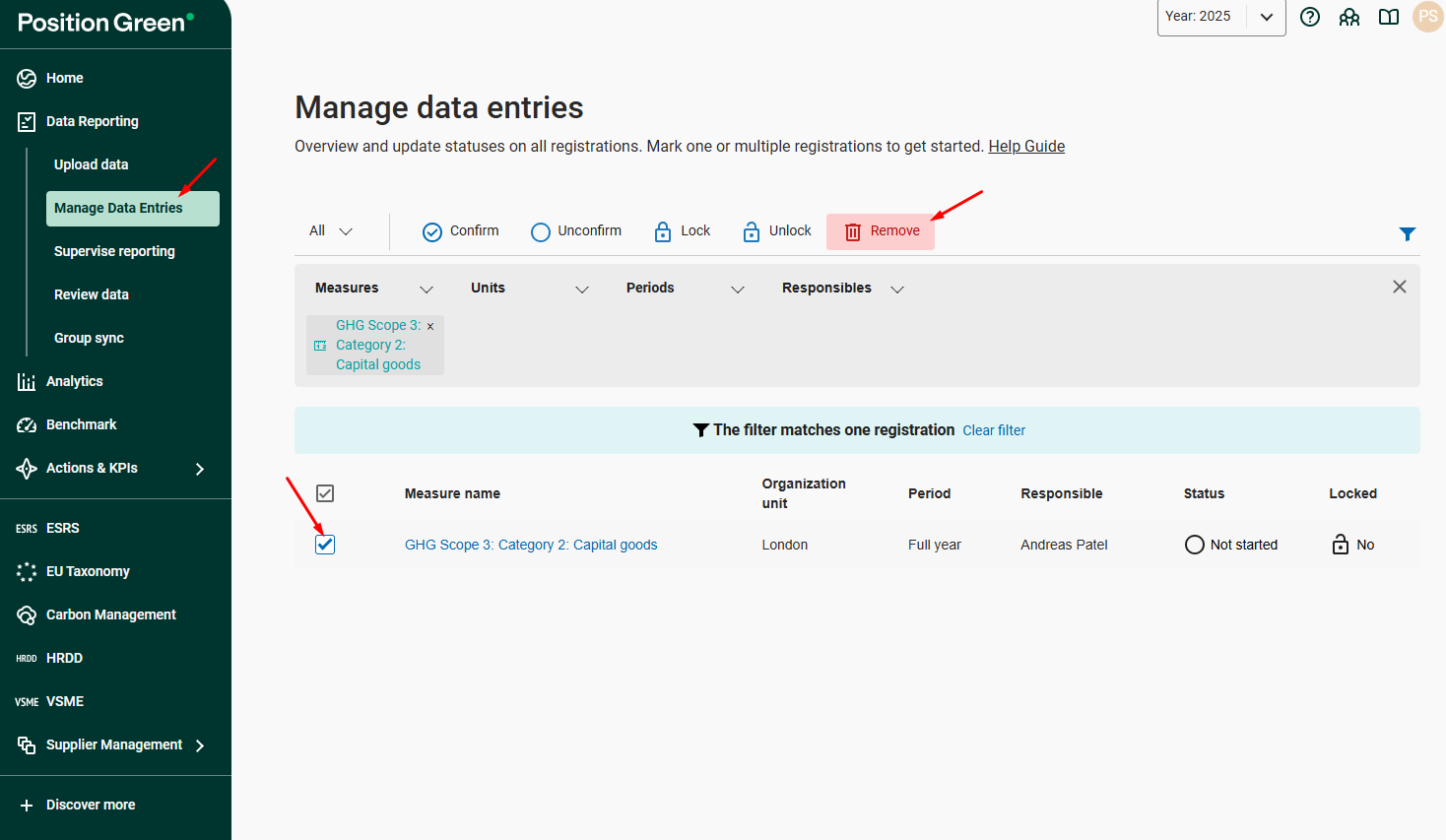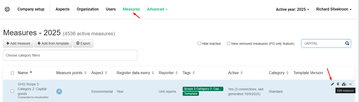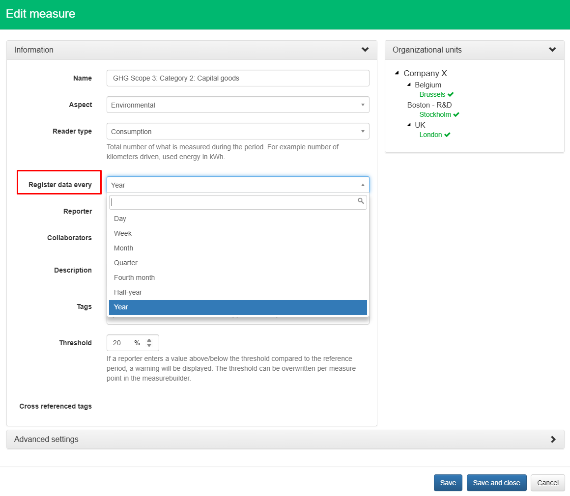 - In the measure settings, adjust the field Register data every ... to the new reporting frequency.