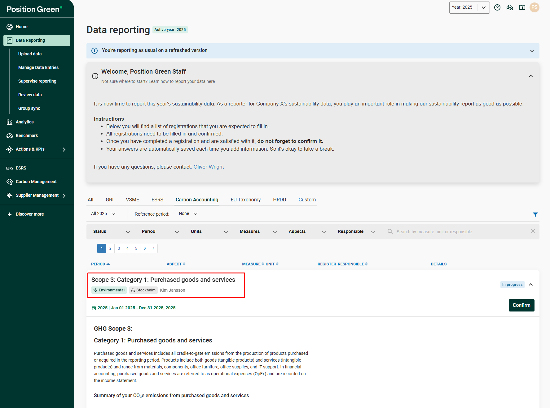 8. Insights and Reporting - Mapped emissions can be visualized and tracked through Position Green dashboards and reports.