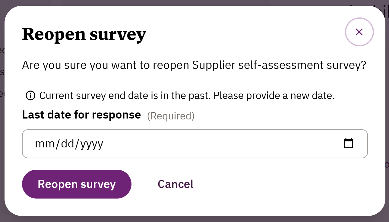 - You will have to set a new last date for response and click Reopen survey to confirm the changes