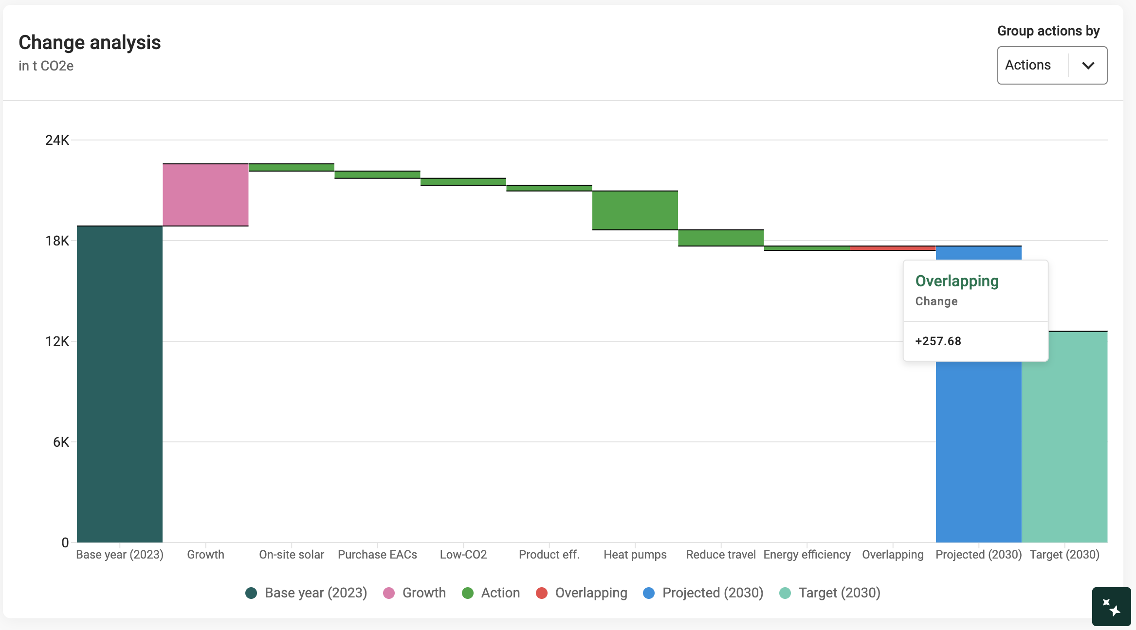 Exempelvis visar diagrammet nedan överlappande åtgärder på 257,68 tCO2e.